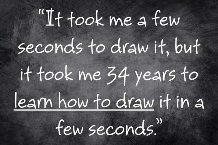 Eu levei de alguns segundos para desenhar isso, mas eu precisei de 34 anos de prática para ser capaz de desenhar em alguns segundos.